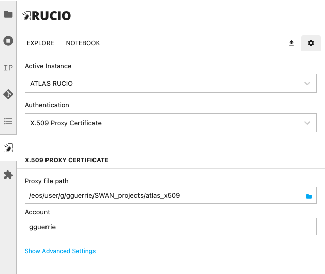 Once your SWAN session is launched with the Rucio extension enabled, you need to authenticate with the Rucio cluster to access datasets.